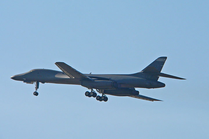 B-1B Slow, Wings Extended, Flaps Down, Nozzles Closed