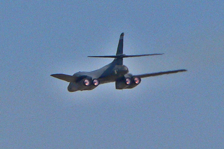 B-1B Away, Wings Swept, Nozzles Open, Afterburners On