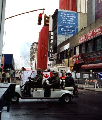 Our soldiers go to work when called - foreign or domestic. On the plane ride there, some of the passengers agreed on a plan for attacking any would-be hijackers. People brought blankets (to protect from knives) and flashlights (for impact weapons). The lady next to me asked, "So, are you with me? If it comes to it, will you help me?" I never would have even dreamed of such a conversation and there I was having it! Unbelievable. |
