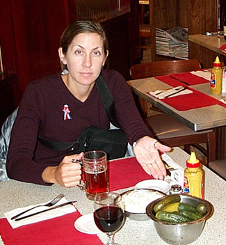 "Hey Dad! We're not in California anymore!" In Cali, we're used to getting chips and salsa or a loaf of bread before our meal. In this NY Deli, they served us this huge bowl of pickles and a tub of coleslaw. And, don't forget the mustard! NOT!!