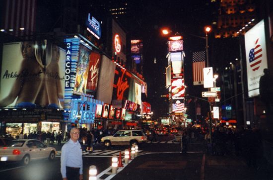 Our hotel was just a few blocks from Time Square. We walked down there the night we arrived. Here's my dad amongst the neon.