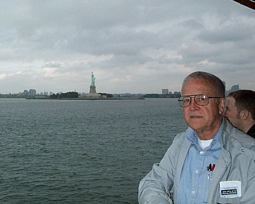 The Statue of Liberty was closed so the Staten Island Ferry was our only chance to get near it. Here's my dad with Lady Liberty in the background.