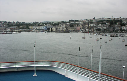 The Town of Falmouth from the bow of the ship. Its climate is influenced by the Gulf Stream and is fairly mild.