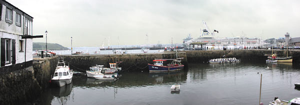 The inner harbor for small boats, looking towards the harbor entrance. The Royal Princess is at the right.