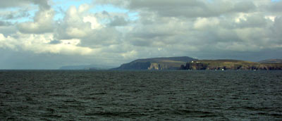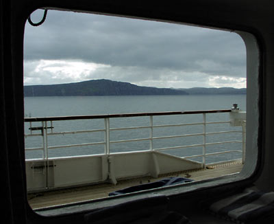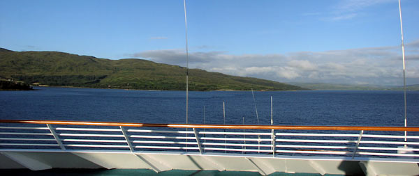 The ship sailed in the narrow passage between the Scotland mainland and the island, which was quite