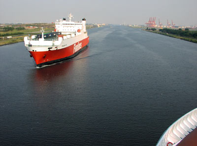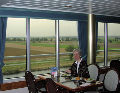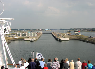 View from the Lido Cafe on the Royal Princess en route to IJmuiden on the North Sea Canal.