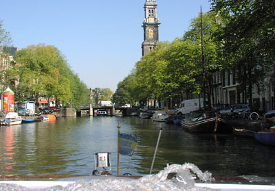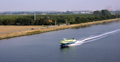 A hydrofoil commuter boat on the canal near Amsterdam. |