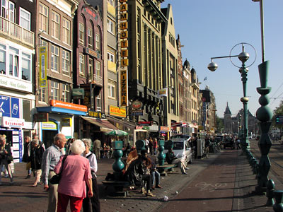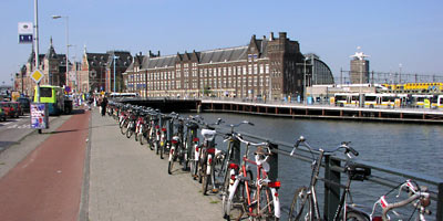Of course there are many bicycles in Amsterdam, and bike paths are numerous. The grey sidewalk is for pedestrians and the