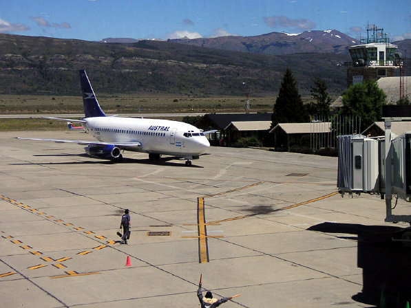 036 Bariloche Airport Looking west. The Boeing 737-200 for our flight to Buenos Aires.